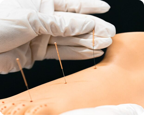Acupuncture stimulates specific points on the body to activate natural healing processes. Fine, sterile needles are placed at targeted areas to help release endorphins (natural pain-relieving chemicals), regulate inflammation, and support nervous system balance.